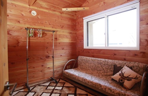 This is a Log cabin which is located in Lake Toya.