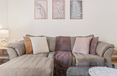 - Comfortable seating, coffee table, and tasteful decor.