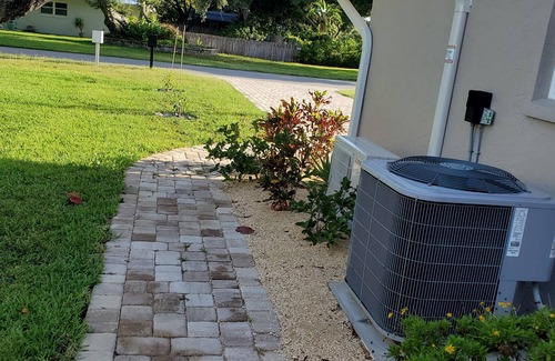 Located in New Smyrna Beach/Central Beach area. Studio garage accommodations with ground lighted private entrance. Front paver patio with 2 loungers, 2 rocking chairs, bar table with chairs. Kitchen has a window above the stainless double sink with spray faucet, granite countertop, 4 burner electric glass cooktop, microwave/convection oven, coffee maker, refrigerator/freezer. Bath has a shower stall, mirrors, sink/cabinet, toilet/bidet, towels. Living/dining/sleeping area has a mini split heat/air, smart TV, wireless internet, 2 xl twin beds with 10" foam mattresses separate or together as king (specify when booking). Table with 2 chairs. Walk/drive 1 block to beach access for sunrise, drive on beach, short walk to intercoastal drawbridge to see sunsets, restaurants, bars, shops, famous Flagler Ave, grocery/pharmacy. Urgent care, hospital, and laundry services close-by. Easy access to NASCAR International Speedway, Cape Canaveral, Orlando amusement parks, Daytona/Sanford/Orlando airports, Saint Augustine, Ocala, West Coast, Miami, Key West. Quiet residential neighborhood, suitable for 1-2 respectful, responsible non-smoking adults seeking to explore community amenities. Not suitable for children, pets, guests, wide passageway or limited mobility needs. No open flame, combustibles, illegal drugs, or alterations to premises. Property is zoned long term rental. If you are unable to stay the entire month, the month will be blocked out so that you are the only renter in the month and you I’ll be required to only pay the days you stay.