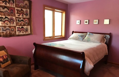 Great location for the best Hiking & Skiing in the country, only minutes from Teton Village. Located on 12 acres, very private modern house with all the conveniences, hot tub, wood stove & unique location next to ranches and the Snake River. Owned by an Artist, the house is beautiful & full of unique art collected from all over the world. There are 3 comfortable bedrooms & 2 1/2 baths. Large deck on the south side of the house facing the horses and pasture. I'm a mile from the Aspens Market and Fine Dining, minutes to walk to the Calico Restaurant and Teton Pines Golf Course & Resort.