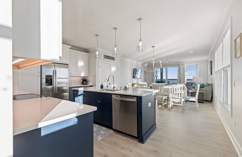 Amazing, unobstructed panoramic views of the beach and ocean will take your breath away. First renting in 2024, everything is new in this exceptionally appointed unit. You will have the entire second floor in this 2 unit house. If you don’t spend all your time on the beach, the rest of the time will be spent on the huge deck with plenty of seating. Enjoy meals at the dining table on the deck, or hang out, read a book, enjoy a glass of wine and listen to the waves from two pairs of comfy chairs.
