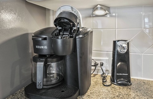 A fully equipped kitchen, stocked with a coffee maker, blender, toaster, and everything needed to prepare delicious meals.