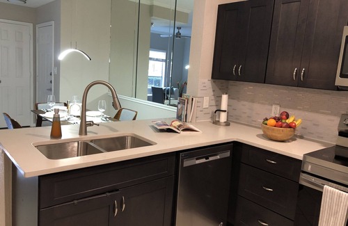 Furnished luxury condo in a secured gated community with 24 / 7 private security guard. All utilities included. New cabinetry, quartz countertops, new appliances, and furniture. Easy keypad access for your convenience