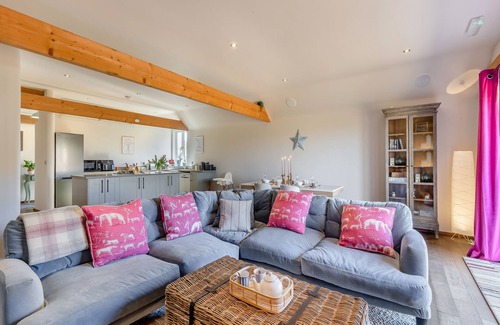 Separate Toilet.. Air source heat pump and underfloor heating, electricity, bed linen, towels and Wi-Fi included. Travel cot and highchair. Welcome pack and doggy extras. Front garden with sitting out area with garden furniture and gas barbecue. Grounds (shared with owner). Nestled in serene rural landscape, neighbouring the owners’ home, yet commands full independence, this luxurious barn offers a perfect blend of comfort and charm. Having level access throughout, the barn is ideal for those seeking a seamless and accessible stay. The thoughtfully designed interior is complemented by large windows that flood the space with natural light. Spacious and beautifully designed with open plan social living plan boasting two stunning bedrooms, one of which features a sumptuous super king-sized bed. Both bedrooms come with level access en-suite shower rooms offering convenience and privacy for guests. Step outside to a delightful private garden, where the BBQ waits for relaxed al fresco dining.