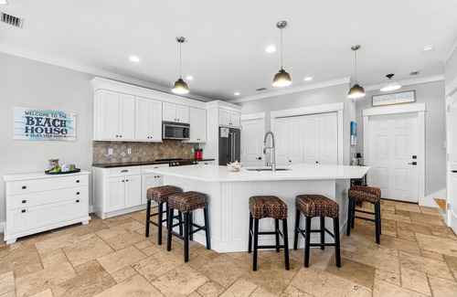 One step inside this recently remodeled vacation home is all you will need to take in its beauty and vibrance. Step inside and take a few moments to simply “Live Life”. The beautiful three story pet friendly home, located in the gated community of Emerald Waters Village, is sure to impress. The home boasts 3 bedrooms and 3.5 bathrooms, accommodating up to 9 people. It is located only one block from private deeded beach access!