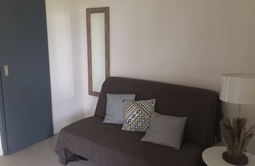 This cottage has an air-conditioned room with bed 160, sofa 140 and bathroom. On the terrace is a kitchenette equipped with a ceramic hob, kettle, coffee maker, microwave, fridge, washing machine. You will have a terrace of 35 m2 and an independent entrance. This studio is located in dead end, quiet. It can accommodate 3 people (2 adults + 1 child). You can call us at 0690632632