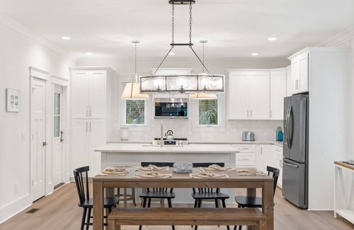 As you enter the home you will happily find a beautifully decorated home in the Serena and Lilly style embracing the elegant beach vibes. An open floor plan allows for the entire family to hang together - the BHI family experience at its best. For some quiet time, you can wander onto the back screen porch and enjoy the forest breeze. Three extra-large bedrooms will accommodate your family with ease. The master suite is on the main level with a spa-like bath and walk in closet. Upstairs you will find two other XL bedrooms - one features a queen bed and en-suite bath, and the second bedroom boasts two double beds and bath. There is an outdoor shower for your use after a day at the beach.