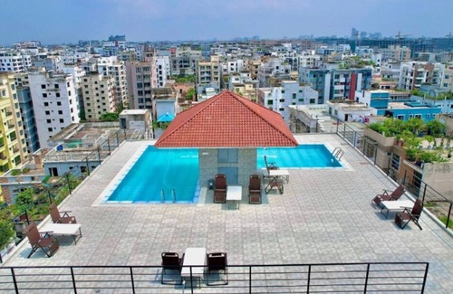 No, this Dhaka apartment does not have a swimming pool. Check the Facility Overview section for details about the pool and other available facilities.