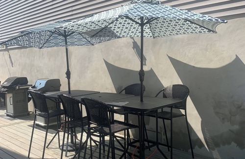 2 bedroom 1 bath condo in Ortley Beach,one block from beach. Two futons in living area. Pet friendly, 2 private parking spot, along with street parking. Includes, central AC & heat, stainless steel appliances, wood flooring, 60 inch flat screen TV with cable, Wifi, and premium cable movie channels. Queen size bed in each bedroom. Full bathroom with tiled shower. Private upper deck with bistro set, large lower deck with patio furniture, umbrella, and gas grill. 4 summer beach badges. Walking distance to restaurants, bakery, shops, mini golf, and close to amusement pier. Please bring your own bed linens, pillowcases, beach & bath towels. 10% discount for first responders.
