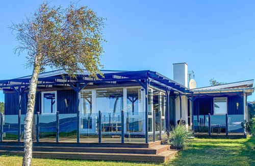 Elegance and rusticity come together harmoniously in this light wood-panelled holiday home. Floor-to-ceiling windows let in plenty of natural light, while cosy sofas and a wood-burning stove create a relaxed atmosphere. Enjoy a fantastic panoramic view of the water and rolling hills from here. Whether you're streaming your favourite series or preparing delicious meals together, here you can organise the day at your own pace.