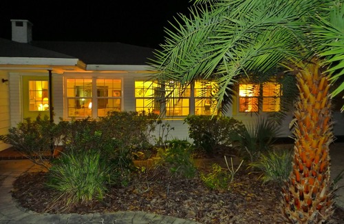 With ample parking available in the shell-covered driveway, this charming cottage is surrounded by Selby Garden-esque landscaping, complete with winding walkways and secret alcoves perfect for meditating or reading a book in a serene nature nook.