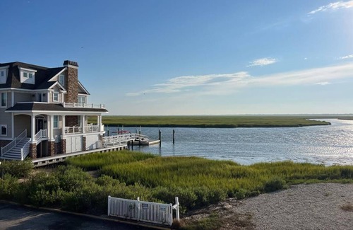 Amazing bay, sunset and intercoastal waterway views! On site parking 6 cars, 3 decks rear, 2 decks front, views from all decks. Decking is Trrex Decking. Close to recreation field and 59th street fishing pier! Highspeed wireless internet included. Check out webcamfor views at http://beachcam2.homeip.net:81/jview.htm.1st level: 1 BR w/2 twins, hall bath, rear BR w/double bed & queen sofabed & rear deck. 5 steps to Living Room w/front deck. 5 steps up the other way is kitchen, back BR w/Queen sofabed, card table & chairs, 1 full bath, rear deck w/grill & table seating 10. Next level has Master BR w/Queen bed & private Bath & deck. Top level is a dormer w/Queen bed, rear deck, & 2 fold out children s sleepers. This is a NON-SMOKING HOUSE. There is a Keurig and a regular coffee maker, electric griddle, electric frying pan and electric George Forman grill on the deck.