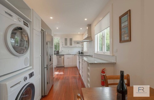 This charming two-bedroom bungalow in Takapuna offers a bright and welcoming atmosphere, perfect for your stay. With two bedrooms featuring one queen bedroom, and the second bedroom with a single over double bunk, it comfortably accommodates small groups or families. For those needing to work, there is a dedicated workspace in the living room in addition to the separate office in the garden.