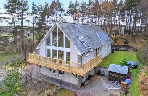 This modern, light-filled house provides an idyllic retreat for up to eight guests, with panoramic views, a private garden, and a wraparound balcony that immerses you in the natural beauty of Scotland. The house enjoys a prime location, just a short walk from Aberlour, a charming town on the banks of the River Spey. Known for its rich heritage, Aberlour is part of the Malt Whisky Trail and serves as an excellent base for exploring the Moray coast, Cairngorms National Park, and beyond.