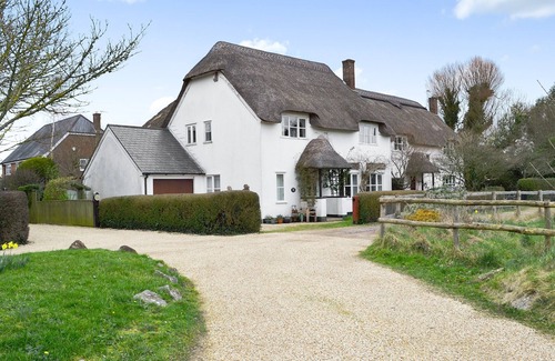 Bathroom: Bath, Cubicle Shower, Heated Towel Rail, Toilet. Gas central heating, gas, electricity, bed linen, towels and Wi-Fi included. Highchair. Enclosed lawned garden with patio, garden furniture and barbecue. Private parking for 2 cars. No smoking.. Peach cottage is very close to the stunning beaches of Dorset’s Jurassic coast, as well as the wonderful walking country accessible from the front door. It is a refurbished new build thatched cottage which sleeps up to nine guests and welcomes dogs. Inside the property all the rooms are spacious with high ceilings. The living room has a view of the stream and some delightful historic cottages.There is a new kitchen which is well-equipped and has a sitting area next to it which includes two sofas, a TV and a games console. The two new modern bathrooms have walk in power showers, and a bath. The large rear garden is secluded and enclosed with outdoor seating areas, great to spend those warm summer evenings in. There are two parking spaces with plenty of further parking on the public road if needed.