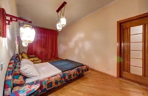 Cozy three-room apartment on Shota Rustaveli street Apartments on Shota Rustaveli street 40 is a choice for guests in the amount of up to 7 people. The features of the apartment are: - fragments of the Moroccan style of one of the bedrooms; - walking distance to the central sports arena of the country NSC Olimpiyskiy - 350 m (the nearest metro station Ploschad Lev Tolstoy - 350 m); - Close proximity to many eateries. Bedrooms differ from each other in the way that only two rooms can differ, never united by a common idea. The first of the bedrooms has a nice oriental Moroccan accent in the form of geometrically oval gold-painted lamps placed on a mahogany plank. The sleeping bed at the head is equipped with an arch with a mirror and two stands, designed for two people to rest, there is also a folding sofa (double) in the bedroom, there is air conditioning in the wardrobe to create a microclimate. The next bedroom is the exact opposite of the first. Made in light peach soothing colors, bedroom furniture in Italian walnut color, double bed with orthopedic mattress, mirror and chest of drawers. The living room-studio with access to the balcony, which offers a gorgeous view, is equipped with a leather armchair and sofa, TV, glass coffee table. The kitchen area has a bar counter where you can slowly drink a cup of coffee in the early morning, and from household appliances there is: - gas stove with oven; - microwave; - Electric kettle; - fridge. The bathroom will please you with a shower cabin with Jacuzzi effect, a washing machine, a bathtub, a mirror with illumination. Places that may be of interest to visitors to the city: - Kiev planetarium - 650 m; - SEC Gulliver - 550 m; - MAMA MANANA (Georgian cuisine) - 350 m; - Puzata Hata (Ukrainian cuisine) - 400 m; - Fine Familia (Mediterranean cuisine) - 450 m; - Art. m. Palace of Sports - 350 m.