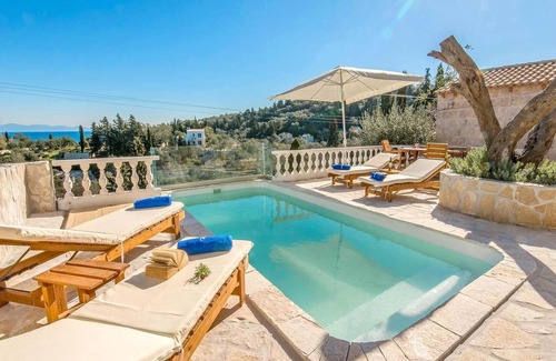5-min walk to the beach, great views, BBQ | Villa in Loggos