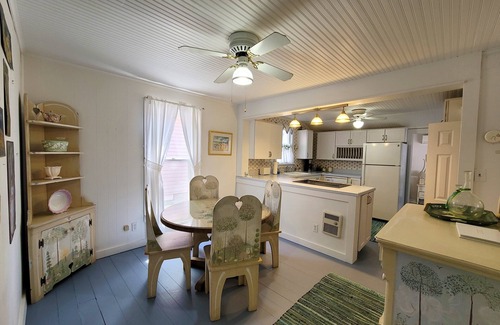 Charming 2 Story home w/ central air located on a lovely corner lot with gardens galore! 4 Bedroom w/2 baths this home offers a spacious layout and porches to envy. Gorgeous primary bedroom suite with nook allowing for natural light to bathe the room. Close proximity to everything Lakeside has to offer! First-floor main bedroom has a queen bed, First floor guest bedroom also has a queen bed. Two bedrooms upstairs, one with a queen bed, one with two twin beds and a trundle - these rooms have half walls between them and not walls all the way to ceiling. See photos. On the first floor there are two full baths with walk in showers. A large kitchen with modern amenities including a dishwasher. Washer and dryer on the main floor. Maximum occupancy of 9. No pets allowed.