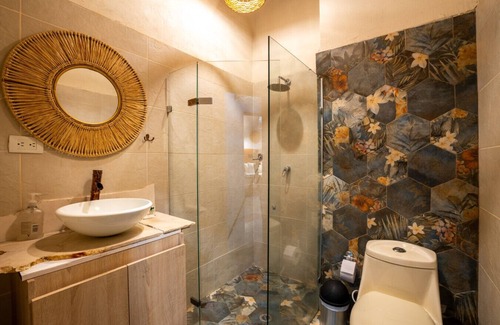 Step into this sun-soaked haven located in the heart of Provenza, where luxury and style blend seamlessly. This stunning apartment offers a meticulously designed interior with a Mediterranean theme that not only enhances the space but creates breathtaking, Insta moments at every turn. Before entering to the apartment you and your group can enjoy a confortable private terrace with amazing view to Provenza área. Please notice as we are located in the main entertaiment district of Medellin it gets noisy at nigth!