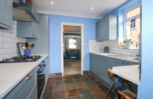 6 The Cottrells consists of a kitchen with an electric oven, gas hob, microwave, fridge, freezer, washing machine, tumble dryer, dishwasher, kettle and toaster, and a living/dining room with dining seating, a TV and woodburning stove. The bedrooms include a king-size and a double which are serviced by a bathroom. Outside there is an enclosed rear garden with lawn, patio and furniture plus roadside parking. One well-behaved pet welcome, but sorry, no smoking at this property. You can find a shop and a pub in 0.1 miles and a beach in 2.4 miles. WiFi, fuel, starter pack for woodburning stove, power, bed linen, and towels are all included in the price. 6 The Cottrells is a wonderful choice for your stay in Sussex. Note: The stairs are steep and may not be suitable for those with limited mobility. Note: Check-in from 4pm, check-out by 10am.