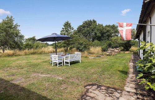 This charming holiday apartment in Vang, Bornholm, offers a spacious layout of 96 m², accommodating up to 6 adults and 2 pets. It features two comfortable bedrooms, including 1 double bed and 2 single beds, along with a cozy sofa bed in the living area.