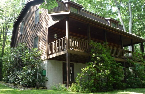 White Oak Lodge (72 White Oak Road, Swanton) is a 6 bedroom, 3 bath lake access log home near the main portion of the Lake, accommodating up to 12 people. It features a shared dock accommodating 2 boats and deep water swimming off the end of the dock. It is located on a secluded wooded lot not directly on the lake, but a short walk down the road and down the steps will take you to the dock. The lower level features 2 bedrooms (king and queen), a recreation room with wood stove, bath, and a hot tub on the covered porch. The main level consists of a large living room, dining room, kitchen, bath, and covered porch. There are 4 bedrooms (queen, queen, 2 twins, and double) on the upper level. Outside is a picnic area with gas grill, charcoal grill and fire pit. It is near Deep Creek State Park and the Discovery Center.
