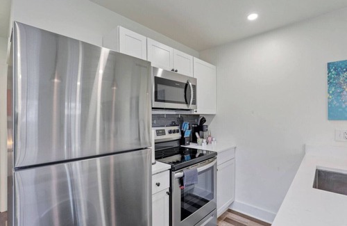 This home is just 5 minutes (1.4 miles) from Downtown Columbus and 8 minutes (2.4 miles) from the Greater Columbus Convention Center, making it convenient for your stay in the city! Inside, enjoy the relaxing bedroom with a queen bed, HDTV, and wardrobe closet; a full bathroom with a tiled walk-in shower; a well-equipped kitchen with a dining area for 4; and a living room with seating for 4, including a queen sofa bed for added sleeping space and a mounted HDTV, perfect for binge-watching your favorite shows!