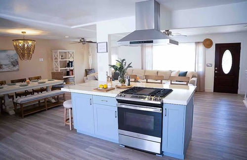 Beautifully remodeled with coastal inspired decor. Reward yourself and lounge by the 8ft deep HEATED pool (for additional cost), relax in the NEW 9 person Medical Grade Jacuzzi, practice on the Golf putting green or just soak up the sun.
