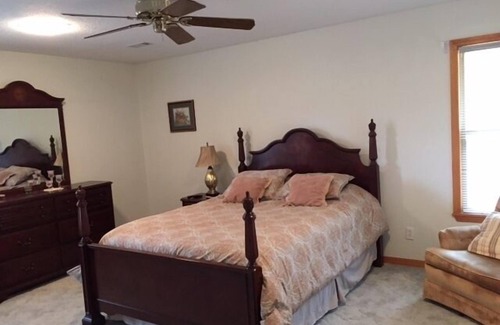 Beautiful home, sleeps 16, use of paddle boat, canoe, kayak, row boat, great setting, large kitchen with two ovens, gas grill, feed the deer, dish tv, off season rates,