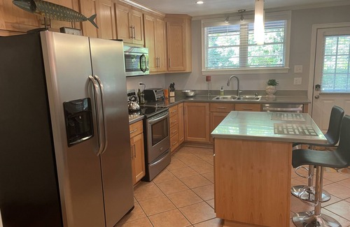 This charming 3BR/3BA bungalow is conveniently located on Milledge Avenue just steps away from 5 Points and the UGA campus. The house is beautiful, comfortable, and has all the amenities you could want for a wonderful weekend. Each of the bedrooms is furnished with a premium queen bed with luxurious linens. The living room is equipped with a queen sleeper sofa and a 65" smart TV for enjoying a movie or catching the game. The large kitchen well-equipped kitchen has everything you need to create a wonderful meal with friends.
