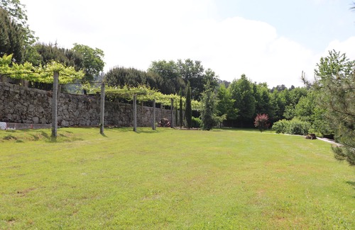 “Casa da Nogueira” with its modern design twist on the traditional Minho region is set on a 2 hectares private park. The charming cottage accommodates 2 people (+ a child). It has two bedrooms, a bathroom, a kitchenette and a living room and, additionally, a library with a fireplace, a games room, a laundry room and a natural outdoor swimming pool in an 1889 traditional tank. The park offers you great tranquility through the water and the flora of the agricultural landscape of northern Portugal.