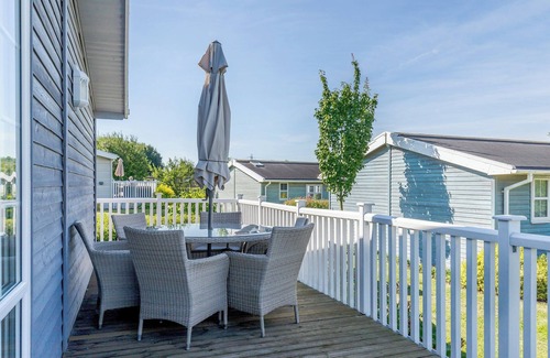 Wet Room: Walk-In Shower, Heated Towel Rail, Toilet. Gas central heating, electricity, bed linen, towels and Wi-Fi included. Travel cot and highchair available on request. Welcome pack. Veranda with sitting-out area and garden furniture. Private parking for 2 cars. No smoking.. A Nordic Style 6 berth Luxury Lodge with raised veranda on 3 sides. Offering recently furnished spacious accommodation finished to a high standard, reached via wheelchair friendly access ramp from adjacent private double-parking spaces. Double width patio doors, facing Southeast for maximum sunlight, opening on to a large open plan lounge dining area with separate kitchen area. Master bedroom with luxury en-suite bath and separate shower cubicle. Further double and twin bedrooms furnished to a modern contemporary level having access to large adjacent wet room. All bedrooms and bathrooms having widened wheelchair friendly access. A wide Southwest facing end veranda positioned to make the most of the sunset over this award-winning Marina with its abundant wildlife in an attractive countryside setting. Wooden shutters to all bedroom windows add that extra luxury finish to the contemporary furnishings in this delightful holiday accommodation.