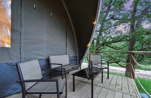 Tucked a half mile beyond the entrance, The Ponderosa Palace offers a tranquil setting set apart from the main road, allowing for an immersive outdoor experience without sacrificing comfort. Your tent is surrounded by the quiet hum of wilderness, and if you’re lucky, you may spot a deer grazing nearby, hear the distant call of a wild turkey, or even catch a glimpse of a fox weaving through the trees.