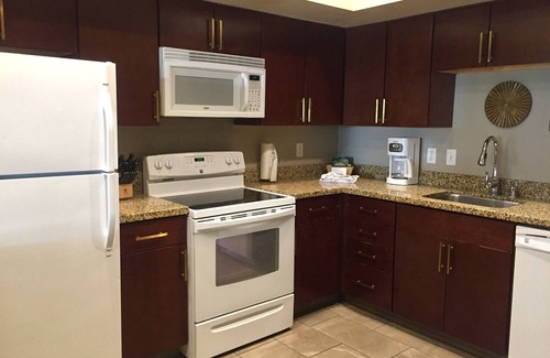 Inside each suite, muted natural tones of orange, plum, blue, and chestnut mimic those of the surrounding desert. Gather the family around for a home-cooked meal in your fully equipped kitchen with a stove, oven, refrigerator, microwave and dishwasher.