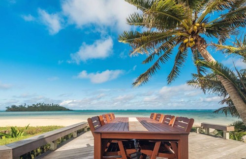 Our property is a very special place beside the sands of Muri Beach on the Island of Rarotonga. Set amongst majestic palms and lush tropical gardens on a beautiful white sandy beach in Muri this gated holiday home offers peace, tranquility and total privacy. Comprised of a three bedroom 3.5 bathroom master villa and a separate one bedroom self contained "cottage" , it is the perfect base from which families and/or friends can explore the beautiful Island of Rarotonga or just take time out to enjoy the view. Includes use of kayaks, two pushbikes, full service every 3 days, Sky TV. The thing that sets us apart is our fantastic location - it is truly a very special part of the world.