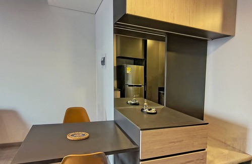 This modern studio apartment is located in a new project, ideal for those looking for a contemporary and comfortable experience. Important note: some social areas are still in the process of being delivered, but you can already enjoy a large and comfortable coworking space, perfect for working or studying in a productive and professional environment.