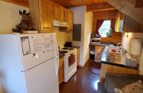 The Aurora Cabin is a fully furnished log home that is perfect for a Family vacation, or extended stay. The Aurora Cabin was designed for your comfortable stay with large bedrooms with two queen beds per room, comfortable living room, large full bathroom and washer & dryer With our vans we can provide transportation and tours. Being a family ran business we are small enough able to be very flexible with your itinerary making your stay relaxing and unforgettable.