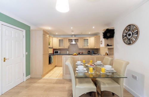 The whole group will enjoy easy access to everything from this centrally located place. An iconic town centre building which can accommodate friends, couples and families to go and explore all the town has to offer. It's a large and spacious flat that has a bedroom at either end; whilst also having its own bathroom off each bedroom (one being an ensuite).