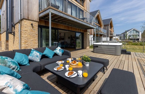 The brand new, All Aboard, is gorgeous! A modern 'barn style' villa spread across 3 floors topped off with the stunning panoramic apex window spanning the entire width of the home, offering breath-taking views of Minety Lake. With its very own private hot tub, this large occupancy lodge is perfect for mixing families & friends alike, offering the space and comfort to the envy of many.