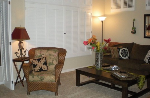 Come and experience 'Aloha In The Desert.' Please check my Calendar, as it is up to date. You can also check my other properties on vrbo # 192693 ,in Kailua Hawaii and # 167180 in KoOLina on Oahu. Also so you can read my reviews and know how I maintain my properties. There are two golf courses here in Sun City, putting green course, world class gyms and over 100 clubs to join in and have fun. Close to world famous Palm Springs, theaters, casinos PGA golf tournaments..Shopping and dinning are endless. Sun City is a sought after 55+ community, for guests seeking warmth and a break from the hectic city life. HOA rues are minimum 30 day rentals... I can offer lower rates like $3500 for a year rent up to $4900 for winter month for 4 months. Tenants pay gas & electric. ALOHA...JUDY