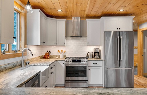 This 5-bedroom, 3-bathroom lodge blends modern design with mountain comfort, creating a relaxed and welcoming space to unwind after a day on the slopes. The open-concept vaulted living area flows seamlessly into a well-equipped kitchen and dining space, perfect for gathering with friends and family.