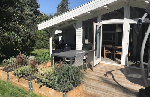 There is also a nice, large garden room with both a sofa - and a dining area and direct access to the open terrace, where you will find both a barbecue and garden furniture.
