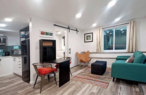 The newly renovated garden studio is facing a beautiful garden. It has its own private entry and patio seating. This spacious and architect-designed 450 sqft studio has an inviting living space, a very comfortable sleeping area, a modern bathrooom (with a rain shower and heated towel-rack) and an efficient kitchen. All the appliances are new.