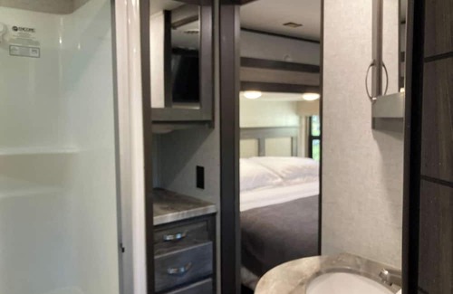 Bunkhouse rv with queen bedroom and bunk room sleeps 5! Residential fridge and stove, tv in all rooms. Short drive to Rockport, near goose island state park and Lamar boat ramp. Located in small family owned rv park in holiday beach.