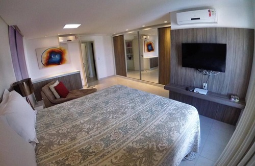 Apartment of 120m2 furnished. Being 3 Suites, Toilet, Living Room, Balcony and Full Kitchen. Front for the Sea - Behind the Crab Walkway