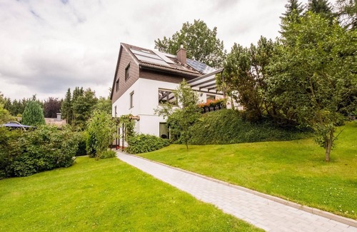 Parking directly at the property, free of charge. Carport possible for a fee. in south-west hillside location with wonderful distant view into the Harz foreland and connection to the extensive network of hiking trails. In about 12 minutes you can walk downhill to the center.