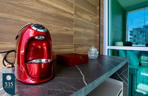 The balcony is one of the highlights of the apartment: a charming spot with a dining table and a capsule coffee machine, perfect for starting your day peacefully or enjoying a special moment outdoors.