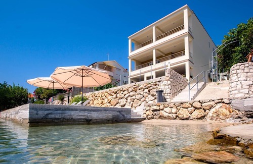 The apartment in Supetarska Draga has 1 bedrooms and capacity for 2 persons. Accommodation of 60 m² nice and is modern, located on beach, It has waterfront. The property is located 20 m rock beach, 100 m from the restaurant, 500 m supermarket, 3 km water park "Waterpark in Kampor", 3 km city "Town Rab" and it is located in a a charming zone and next to the sea. The accommodation is equipped with the following items: garden, terrace, washing machine, iron, safe, internet (Wi-Fi), hair dryer, air conditioning throughout the house, open-air parking in the same building, 1 TV, satellite tv (Languages: English, German). The open plan kitchen, of hotplate of glass ceramics, is equipped with refrigerator, microwave, oven, freezer, dishwasher, dishes/cutlery, kitchen utensils, coffee machine, toaster, kettle, kitchenware, plates and bowls, stove.