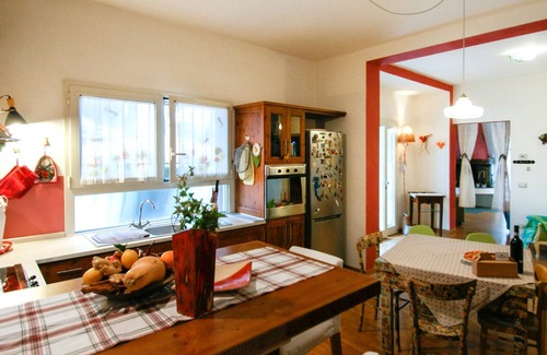 Apartment in the center of Riccione, the pearl of the Adriatic, near services, not far from the beautiful beach and the railroad line that crosses the entire tourist area. Riccione combines the warm atmosphere of Romagna with the charm of a well-known tourist town. The apartment is located on the first floor of a two-family house overlooking a green park and near a large public parking lot. As soon as you enter the small gate, you enter the private area available to guests, equipped with a table, chairs and a large umbrella. Upon entering the house, the kitchen is on the right and the living room with sofa bed and fireplace is on the left. In the small hallway there are two bedrooms and two bathrooms. The air conditioning is located in the hallway and cools the central part of the accommodation and partially the bedrooms. Places to visit: San Marino, a medieval town, and Rimini with its historic center in classical Roman style are about an hour's drive away. Ravenna with its mosaics and ancient churches is about 2 hours away by car. Nearby there are water parks for children and adults.