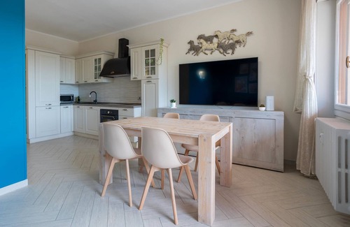 Penthouse surrounded by greenery, featuring a beautiful 80-square-meter terrace furnished with all amenities, including a dining table and chairs, sun loungers, and sofas. From here, you can admire the lake and the centuries-old park in which the apartment is located. The apartment offers a double bedroom, a comfortable sofa bed with a memory foam mattress, and a bathroom with a shower. It is also equipped with Wi-Fi, a washing machine, and a 65-inch smart TV. The hot tub is available for use only from April to October.